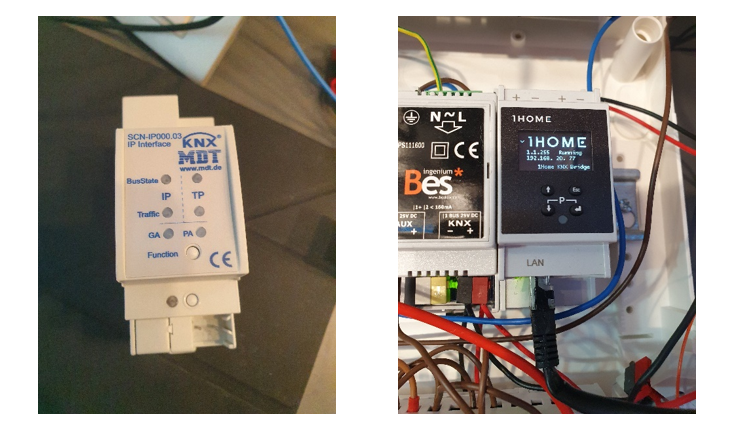 Pentru asta mai avem nevoie de o interfata IP sau USB prin care ne putem conecta la aceste device-uri si le putem configura de pe laptop. Dupa cum am spus anterior, recomand interfata IP deoarece o data ce sistemul KNX ajunge pe reteaua locala (LAN) posibilitatile de interconecare cu alte sisteme smart sunt nelimitate. Initial am ales o interfata IP de la MDT. Pe urma am fost curios legat de noul bridge de la 1HOME (e si o interfata IP integrata in el) care face sistemul KNX compatibil cu Apple HomeKit, Google Assistant si Amazon Alexa.