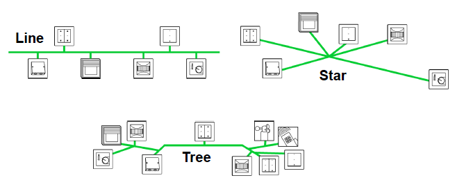 Prin urmare e suficient sa intelegem ca unitatea de baza e linia. Aceasta linie include o sursa KNX (cu acel choke incorporat) si in functie de situatie putem conecta maxim 64 de device-uri KNX TP. Pornim de la sursa cu firele TP catre un senzor si/sau catre un actuator, din senzor/actuator catre alti senzori si alte actuatoare, astfel ajungand la o topologie de tip arbore foarte flexibila, un sistem care poate fi extins foarte usor in orice directie. Atata timp cat nu se incurca bus-ul KNX cu conductorii de la reteaua electrica (230V) nu cred ca se poate intampla ceva foarte gresit la partea de instalare a produselor KNX.