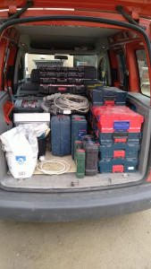 Observi salopeta, masina, uneltele, cutiile aranjate frumos si iti dai seama cat a investit acel om in meseria de electrician. In ideea in care eu am vorbit cu un electrician care s-a dus sa monteze intrerupatoare Livolo cap-scara, a sunat la suport ca nu functioneaza si cand i-am spus ca primul pas e sa identifice faza cu un creion de faza a spus ca “n-am”. Nu stiu daca intelegeti, dar electricianul acela s-a dus la lucrare cu o surubelnita, sau poate a cerut un cutit de bucatarie de la proprietar. Nu inteleg de ce s-a mai dus, nu inteleg de ce l-a lasat proprietarul sa se atinga de instalatie cand l-a vazut asa. Cred ca e foarte simplu pentru oricine sa faca diferenta intre o masina incarcata cu scule profesionale in valoare de mii de euro si o surubelnita de 3 lei.