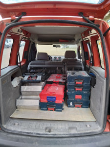 Observi salopeta, masina, uneltele, cutiile aranjate frumos si iti dai seama cat a investit acel om in meseria de electrician. In ideea in care eu am vorbit cu un electrician care s-a dus sa monteze intrerupatoare Livolo cap-scara, a sunat la suport ca nu functioneaza si cand i-am spus ca primul pas e sa identifice faza cu un creion de faza a spus ca “n-am”. Nu stiu daca intelegeti, dar electricianul acela s-a dus la lucrare cu o surubelnita, sau poate a cerut un cutit de bucatarie de la proprietar. Nu inteleg de ce s-a mai dus, nu inteleg de ce l-a lasat proprietarul sa se atinga de instalatie cand l-a vazut asa. Cred ca e foarte simplu pentru oricine sa faca diferenta intre o masina incarcata cu scule profesionale in valoare de mii de euro si o surubelnita de 3 lei.