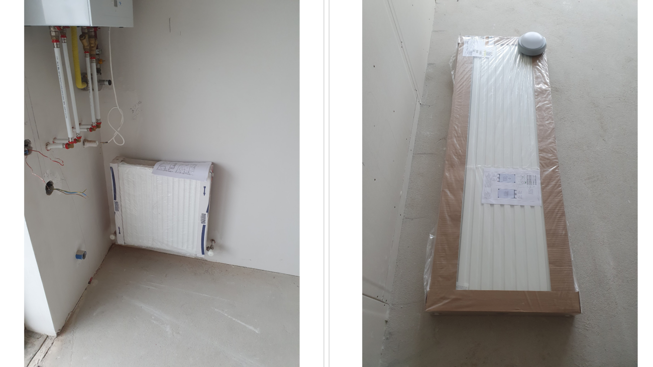 - S-a inlocuit caloriferul subdimensionat cu unul ok pentru suprafata aceea. S-au demontat toate caloriferele pentru a nu incurca finisorii. (Pret calorifer vertical 1395 lei + TVA)