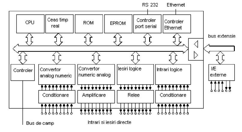 - intrari analogice: de exemplu un senzor de temperatura care transmite temperatura de la 7 la 35 de grade (sunt mai multe trepte, nu doar 1 si 0)