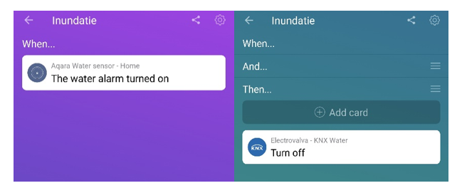 Pentru a intelege mai bine cum ajunge informatia de la un senzor la un actuator intr-un sistem de casa inteligenta relativ complex, care foloseste mai multe protocoale de comunicare, am sa va prezint o automatizare anti-inundatie cu ajutorul unui senzor de inundatie Aqara ZigBee, care actioneaza un actuator (releu) KNX care controleaza o electrovalva.