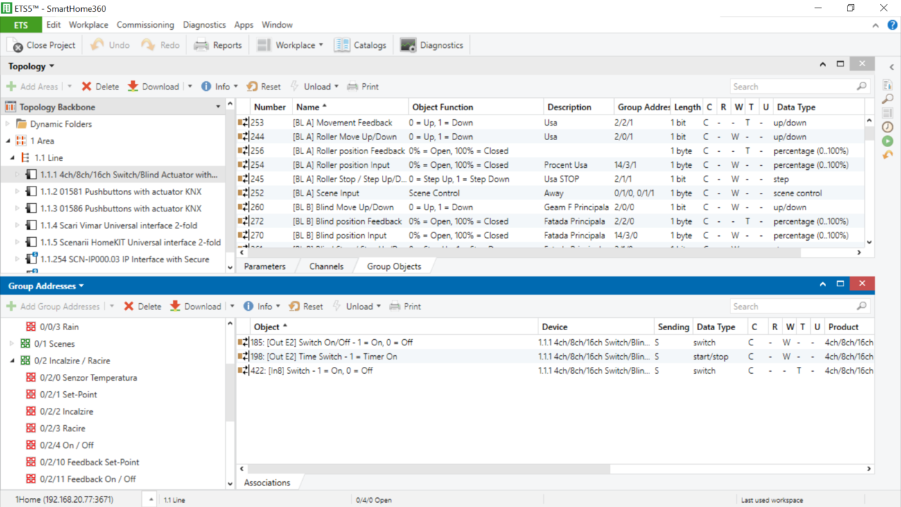 Aceasta configurare a fost realizata cu ajutorul programului ETS, softul de configurare al dispozitivelor KNX.
