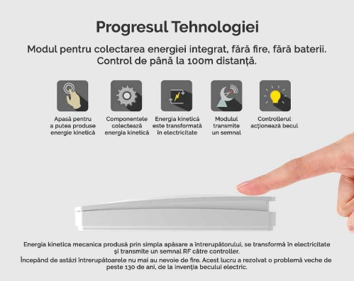 Producatori precum Vimar ofera produse Friends of Hue, fara baterie, care utilizeaza energia cinetica generata din apasarea tastei intrerupatorului. Practic din apasarea aceea cu degetul se genereaza atata energie incat se alimenteaza partea electronica din intrerupator si se trimite comanda wireless catre un bec, un grup de becuri sau chiar toate becurile din casa.
