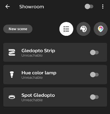 E important cum controlam de fapt aceste dispozitive! Si din cate am observat majoritatea utilizatorilor le controleaza complet gresit. Aceste becuri sunt gandite pentru a fi controlate wireless (fara fir), nu ar trebui intrerupta alimentarea lor niciodata. Din moment ce majoritatea utilizatorilor DIY stiu schimba un bec, dar prefera sa nu intervina asupra instalatiei electrice (si e foarte bine asa!) in care intrerupatorul de perete intrerupe faza, se ajunge la o multime de situatii in care becul Philips Hue e controlat gresit si mai mult e offline decat online. Tot ce ar trebui facut e sa se inlature intrerupatorul existent, sa se lege faza in doza de aparat astfel incat becul Philips sa fie alimentat tot timpul, iar doza de aparat sa se acopere cu un „intrerupator” Philips care de fapt e o telecomanda cu baterie si trimite comanda wireless catre becurile noastre. In acest fel toate dispozitivele vor fi controlabile absolut tot timpul din aplicatia Hue (si nu numai), din moment ce vor fi alimentate tot timpul. Astfel evitam situatiile in care dispozitivele noastre compatibile Hue apar „Unreachable” in aplicatie.