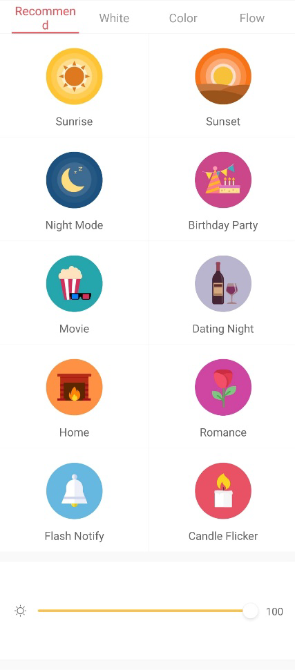 Are diferite moduri de iluminat predefinite pentru: rasarit, apus, seara, petrecere, vizionare TV si are moduri predefinite chiar si pentru situatii romantice, pentru a economisi timpul utilizatorului modern.