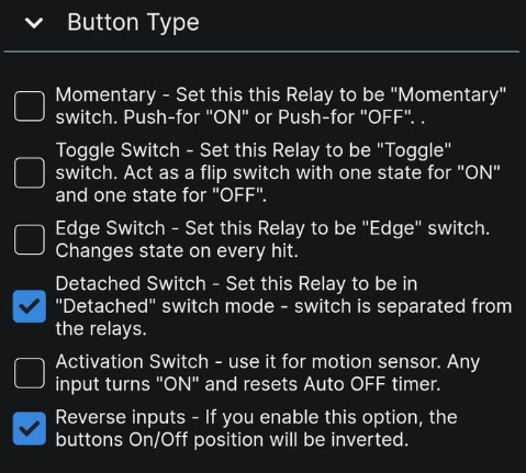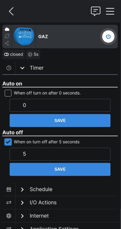 - Partea de „Detached Switch” se refera la faptul ca releul e „separat” de intrarea SW pentru intrerupator. In mod uzual acest modul Shelly se foloseste la iluminat, deci atunci cand apesi pe clapeta de la intrerupatorul conectat la SW vrei ca si releul din Shelly sa comute si sa actioneze becul care e legat pe O. (Putem spune ca releul e „impreuna” cu intrarea SW.) Dar in situatia data avem un senzor de gaz care e legat direct la Vana si vrem doar notificari prin SW. Daca nu selectam optiunea cu Detached Switch atunci practic avem o comanda dublata. Cand declansa detectorul, declansa si Shelly-ul si ii mai dadea un impuls la Vana. Nu e neaparat gresit, dar de ce am face asta? Puteam sa nu mai leg detectorul direct la Vana ci sa comand doar Shelly-ul care la urma lui comanda Vana, dar aici e o chestiune de „safety” din punctul meu de vedere. Adica vreau ca senzorul de gaz sa trimita comanda DIRECT la Vana si sa ma notifice prin Shelly, iar Shelly sa trimita in paralel cand zic eu sau sistemul smart.